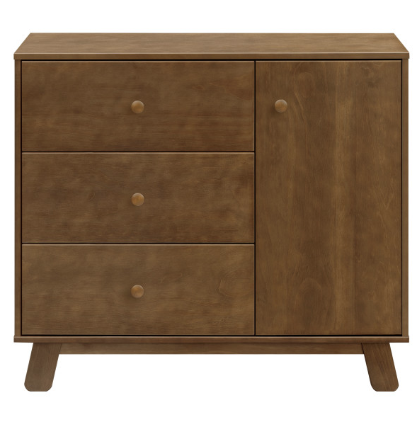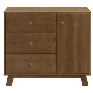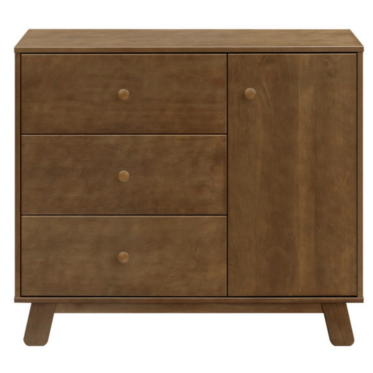 Meet the Hudson Modern 3-Drawer Dresser, your nursery’s new MVP. Updated with a fresh, streamlined design, this dresser keeps the same smart storage you love, with three roomy drawers and a side cabinet that’s perfect for stashing diapers, wipes, and extra onesies. Smooth-glide drawers make late-night changes a little easier, and the adjustable shelf inside keeps everything right where you need it. Finished with tonal wood knobs, hidden hardware, and an included anti-tip kit, it’s equal parts safe, functional, and seriously good-looking. Pair it with the Hudson 3-in-1 Convertible Crib for a nursery that’s effortlessly cool from day one.