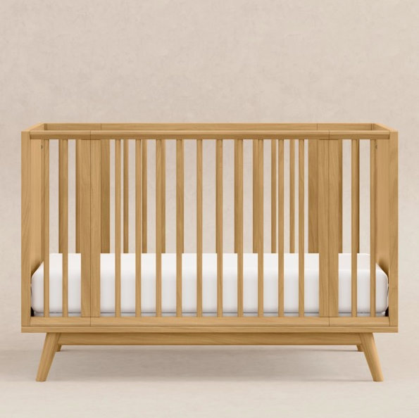 MID-CENTURY MODERN DESIGN: Defined by Palma’s signature flared legs and sleek, low-profile silhouette, this minimalist crib brings timeless mid-century style to any nursery. Hidden hardware construction eliminates visible exterior screws for a clean, refined finish.
