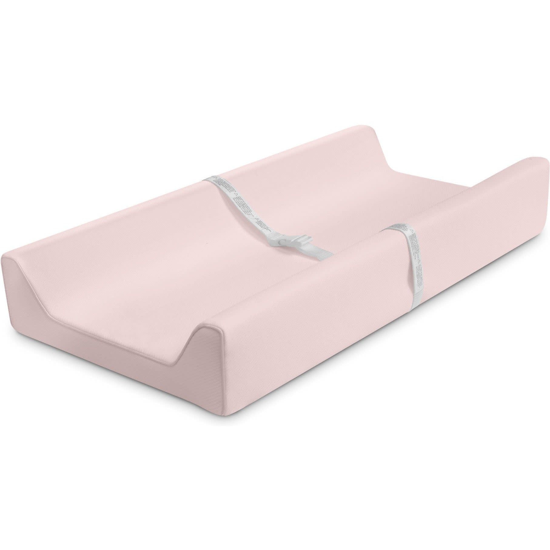 Contour shape with safety strap keep your baby safely in place on this soft changing pad. Made with plush foam, waterproof barrier and a removable and machine washable knit cover, this changing pad comes in fashion-forward colors to complement any nursery