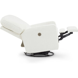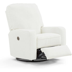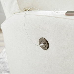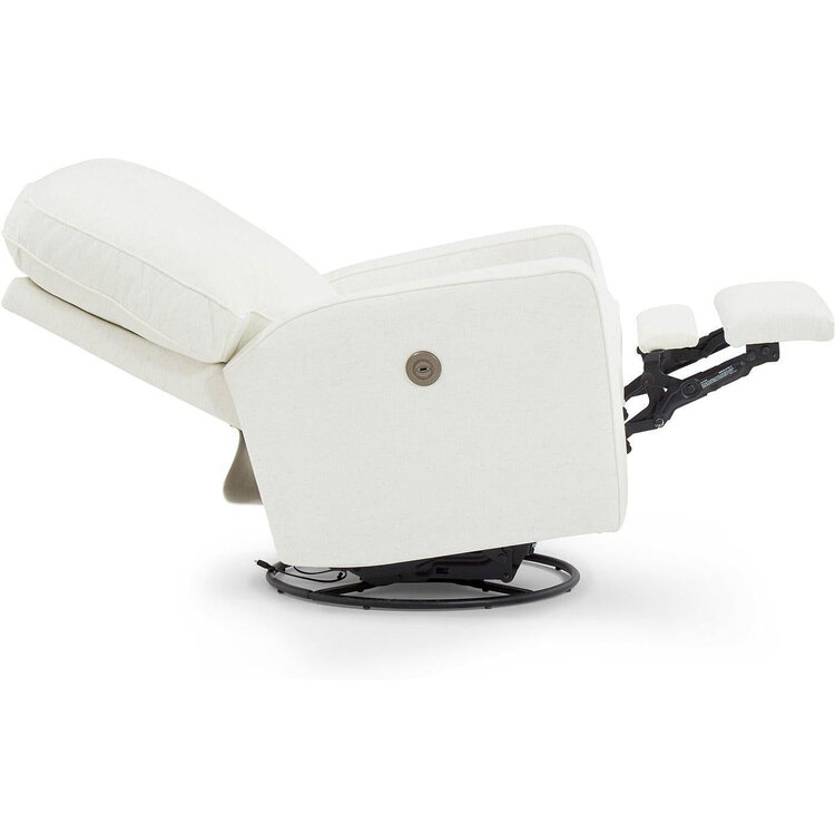 You’ll have a blast picking the fabric that best suits this swivel glider recliner. The squared corners and straight lines lend itself to be either contemporary or transitional and can coexist with any of your furniture. Comfort is smooth and effortless with the hidden inside reclining handle, or upgrade to power that features a stylish button on the side that also acts a USB charger. Choose from a wide assortment of fabrics to suit your decor. The Bilana Swivel Glider is a stylish recliner that is ideal for any room of the home, including the nursery. (More colors available in store.)