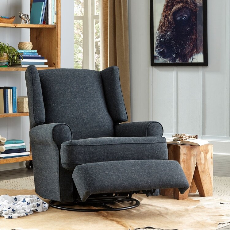 Style meets comfort with the Logan swivel glider recliner. The fine, made in the USA tailoring is evident with the tufted back, clean lines, and updated wing back. The size and styling make this recliner ideal for the living room, bedroom, den, or nursery. Choose from over 100 fabrics to work perfectly with your home. The gliding base with a 360-degree swivel feature is a functional and relaxing detail.