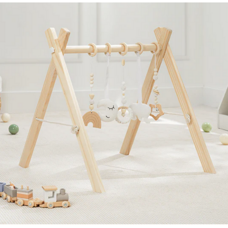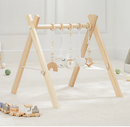 - Elegant Design & Safe Use: The natural finish and modern design of our play gym blend seamlessly into any home decor. Moreover, it's rigorously tested for safety to meet the highest standards, ensuring a worry-free playtime for parents and infants alike.