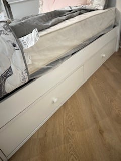 Review Full- Sized Bed w/ Under Bed Storage + Nightstand Floor Model 50% off
