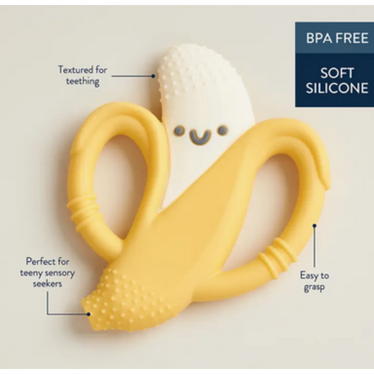 Beckett the Banana! Bid farewell to teething troubles with Itzy Ritzy’s Chew Crew™. Crafted with easy-to-hold handles, this teething companion offers soothing relief with a comfy grip for your baby`s teething journey. Features: - Soft silicone similar to pacifiers & nipples - Easy-to-hold design - BPA and PVC free