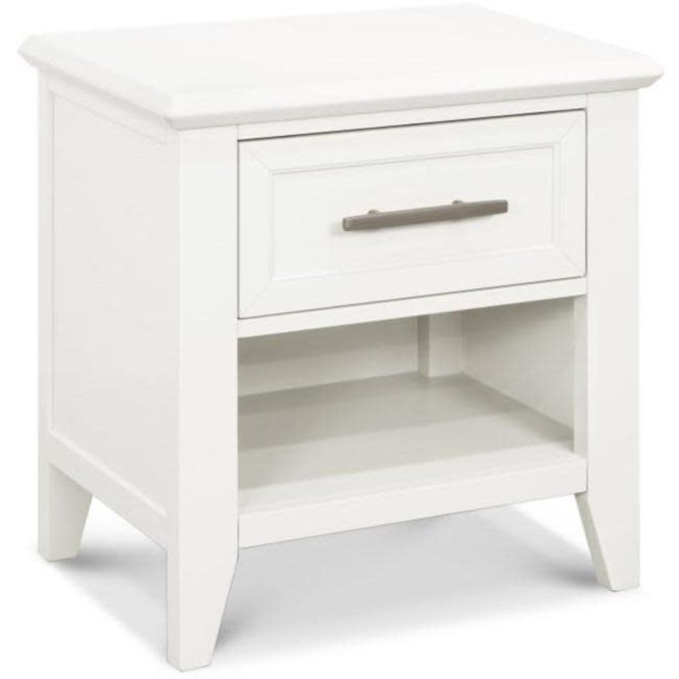 The Beckett Nightstand features the same simple tapered feet and contemporary 45 degree trimming to complement the Beckett 4-in-1 Crib and Beckett 6-Drawer Dresser.