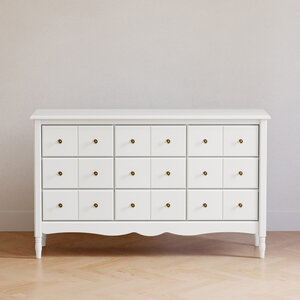 The vintage-inspired Liberty 9-Drawer Dresser brings timeless charm and generous storage to your nursery or any room in the home. Featuring apothecary-style drawer fronts, classic tapered feet, and a gracefully scalloped apron, every detail is crafted with care. Designed to complement our best-selling Liberty, Abigail, and Winston cribs, it’s the perfect blend of function and style.