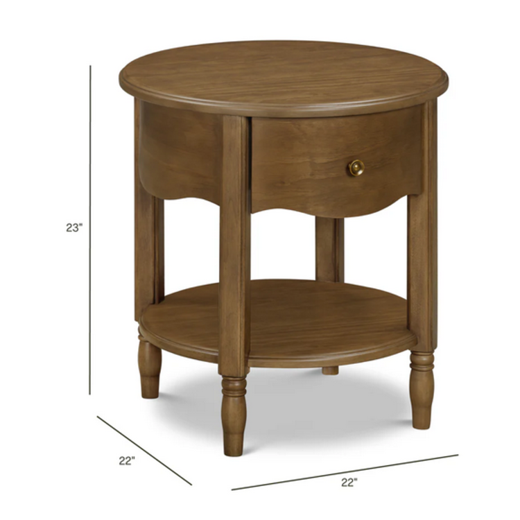 Add a touch of charm to your nursery with the Liberty Nightstand. This nightstand features a timeless, scalloped edge, tapered feet, and elevated hardware - bringing both style and function into your nursery or home. The smooth-gliding drawer is great for stowing away the essentials and a spacious lower shelf offers a space for storybooks or baskets. The Liberty Nightstand is a transitional piece fit for any setting.