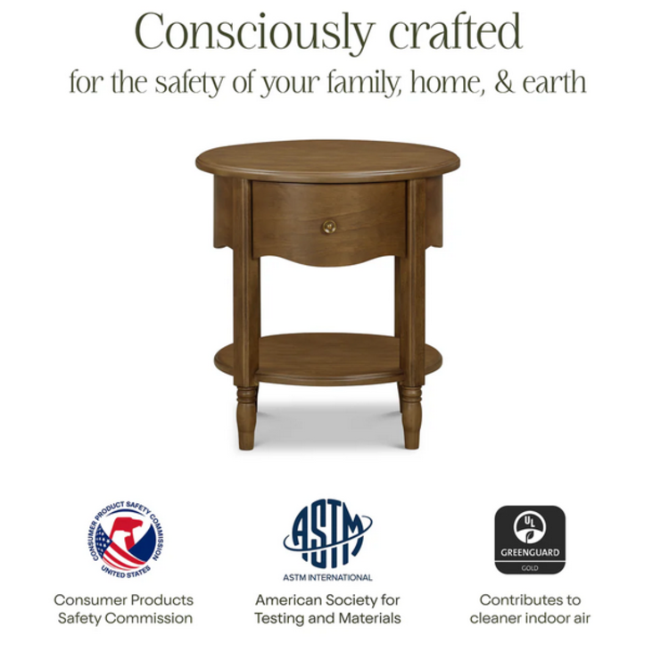 - QUALITY MATERIALS: We source materials with your family in mind. The Liberty Nightstand is crafted with sustainably sourced poplar hardwood, pine veneer, and TSCA compliant engineered wood.