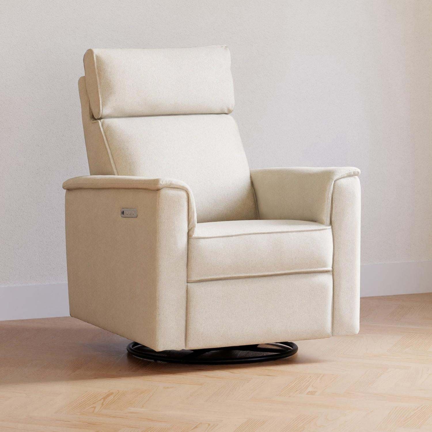 The Willa Pro has all the best features of our popular Willa Plus Power Recliner & Glider - now with additional lumbar support and light feature for even more personalized comfort! Gently soothe or rock your baby to sleep with it's easy swivel and gliding motions. Effortlessly recline with the press of a button with the easy-to-use panel on the outer righthand side of the chair. Elevate your comfort by adjusting your level of support with the power headrest and inflatable lumbar functions. Keep cozy with an under chair light to keep baby asleep during late night feeds.