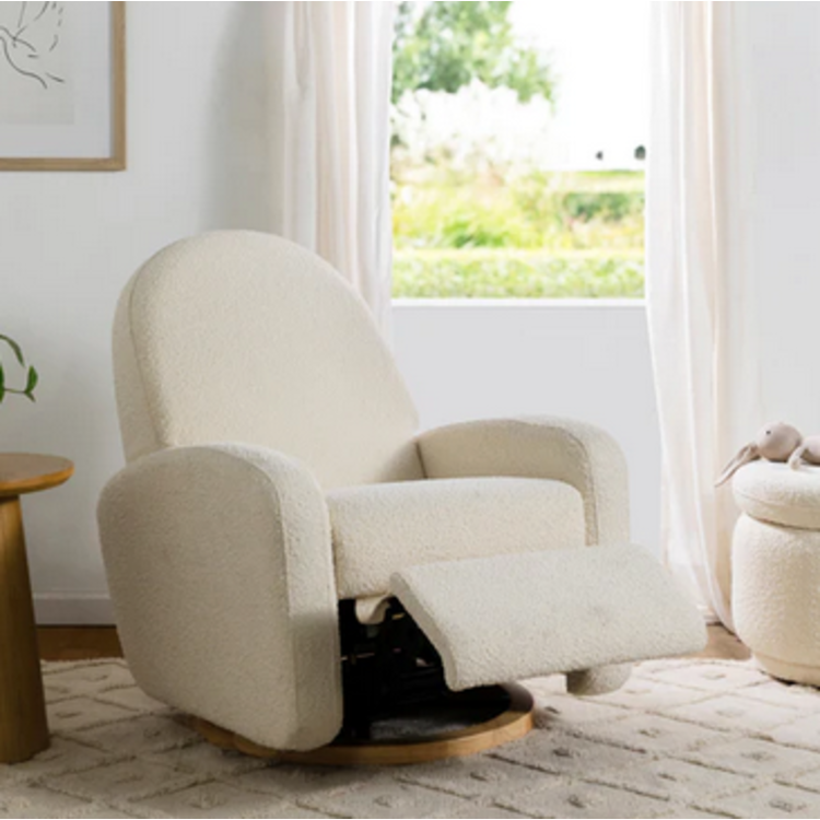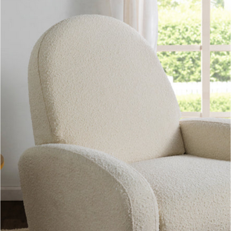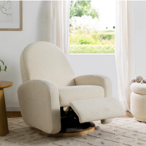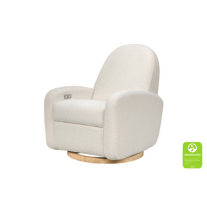 Babyletto Nami Electronic Recliner and Swivel Glider Recliner in Boucle with USB port in Ivory Boucle w/ Light Wood Base