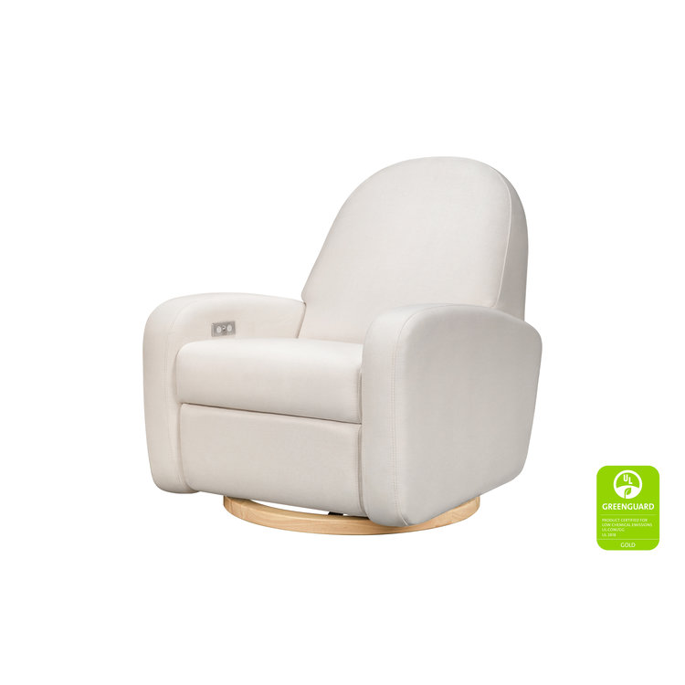 Babyletto Nami Glider Recliner w/ Electronic Control and USB in Performance Cream Eco-Weave w/ Light Wood Base