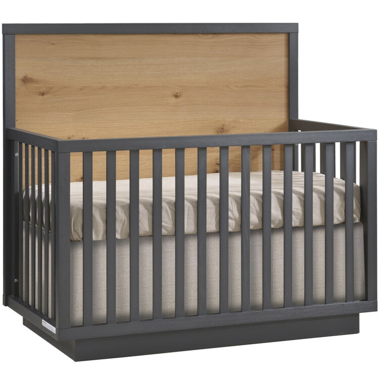- Convertible crib with a thicker and higher 53’’ headboard made of Materic Natural Oak wood to show all the Natural characteristics of the wood in order to convey a Truly Natural look. The Materic Oak is carefully selected in order to keep the natural wood knots showing without the splintery lines.