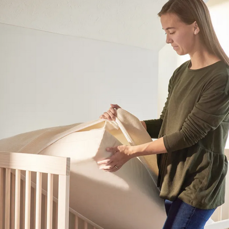 Get a replacement or extra cover for the Organic Breathable 2-Stage Baby Crib Mattress. This layer combines breathability and waterproofing for a safer, healthier and more hygienic design. The cover features a soft organic cotton surface and a 3-dimensional polyester lattice structure that creates a breathable space under the baby for increased airflow. This results in improved temperature regulation for less sweaty backs and a reduced risk of overheating. It also allows the baby to breathe directly through the breathable cover if necessary. Additionally, the cover also features a waterproof backing which protects the mattress from urine, spit-up, and other messes, making crib changes easy. Get all the safety and comfort benefits of a breathable mattress with the convenience and practicality of a removable and washable layer.