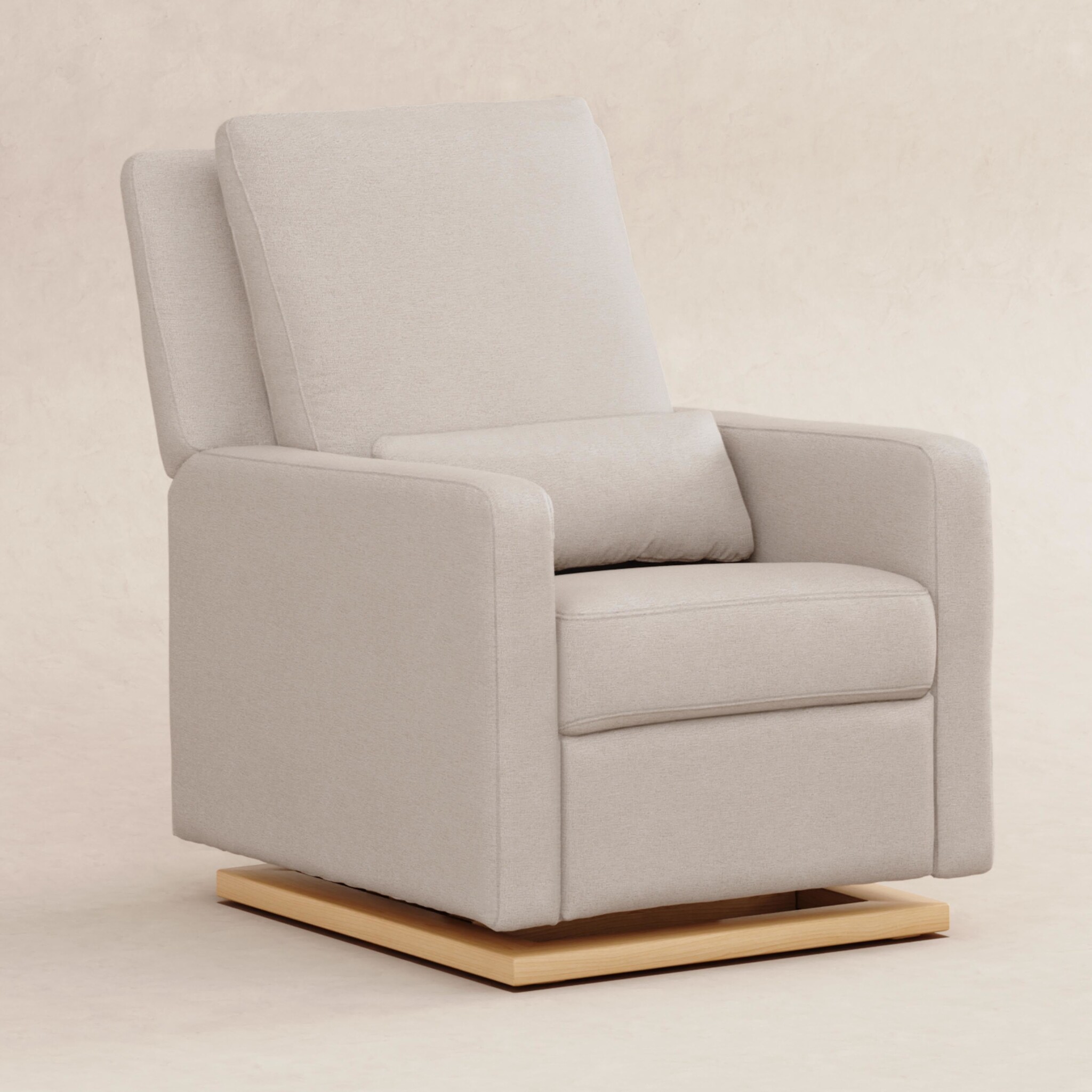 The Sigi Glider Recliner is a stylish choice with its crisp, modern design and comfortable seat on a light wood base. Effortlessly glide back and forth in an upright position to rock your baby to sleep, or lean back and relax at the touch of a button with this recliner's quiet electronic control button. Upholstered by hand in beautifully textured boucle fabric to bring a cozy modern-luxe feel during the nursery years and beyond.